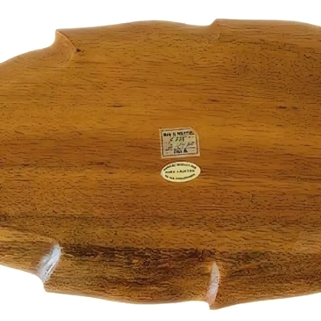 De houten schaal is in zeer goede vintage conditie en is 35,5 cm lang, 20 cm breed en 3 cm hoog.