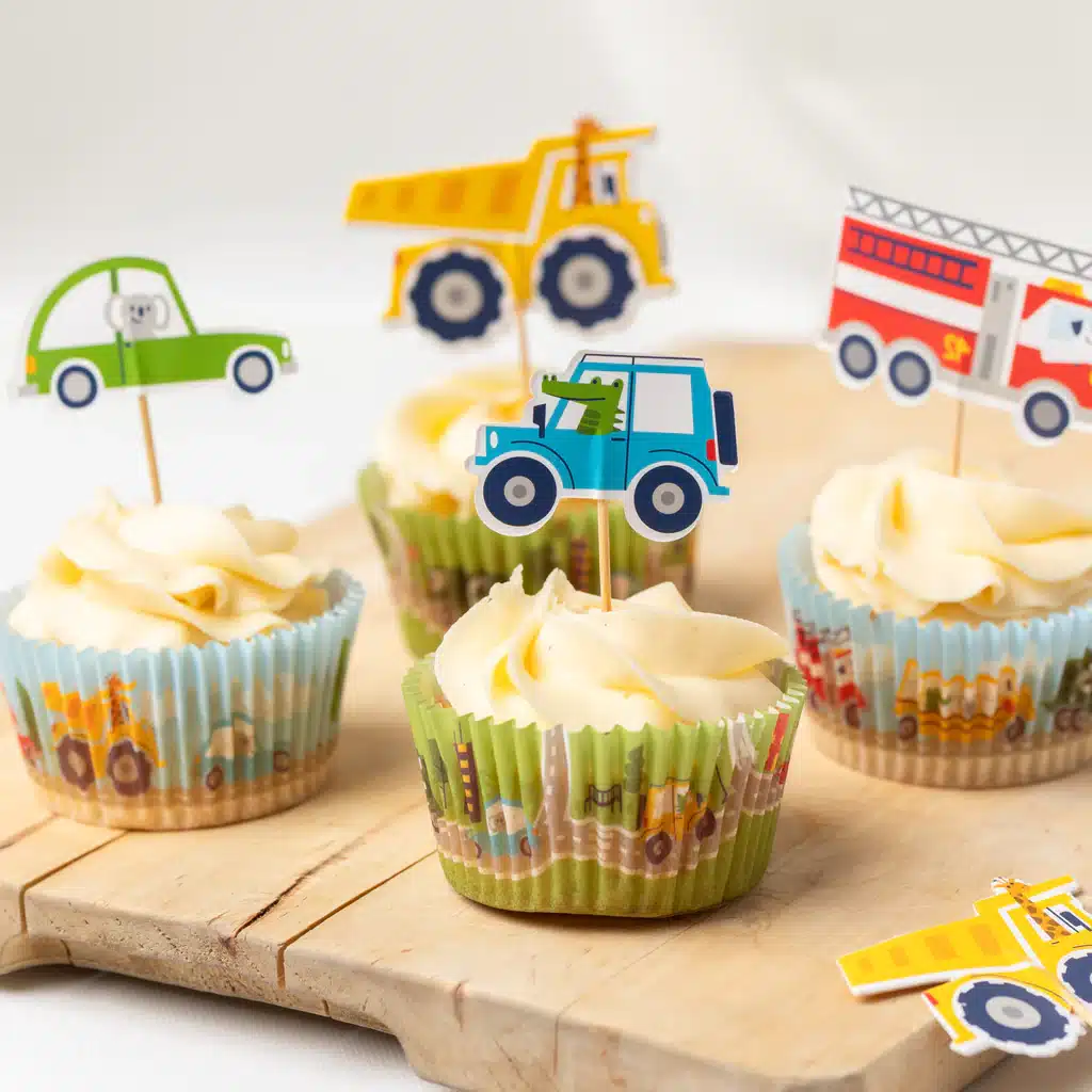 Is jouw kleine gek op alles op wielen? Trakteer dan de lekkerste cupcakes in deze geweldige baking cups in transport thema! Grote kans dat de cupcakes supergoed in de smaak zullen vallen!
