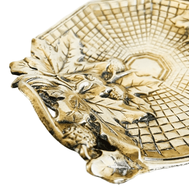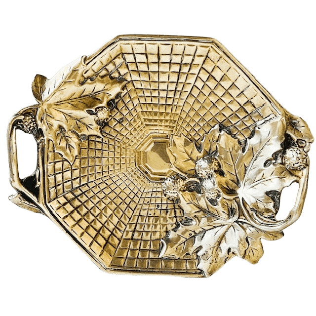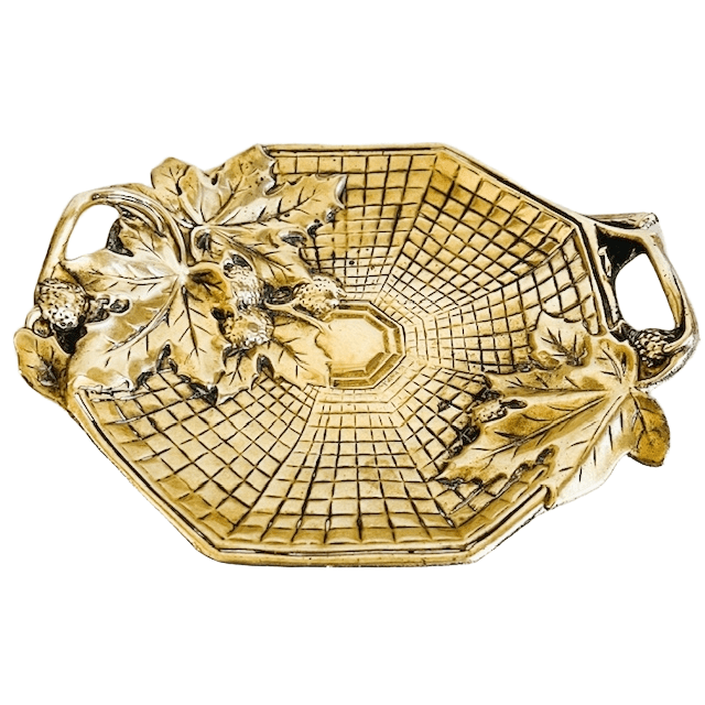 Antiek Frans Art Nouveau vide-poche schaaltje messing bonbonschaaltje met vlechtwerk, wijnbladeren en druiven uit circa 1910
