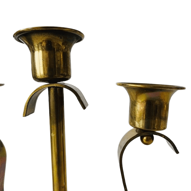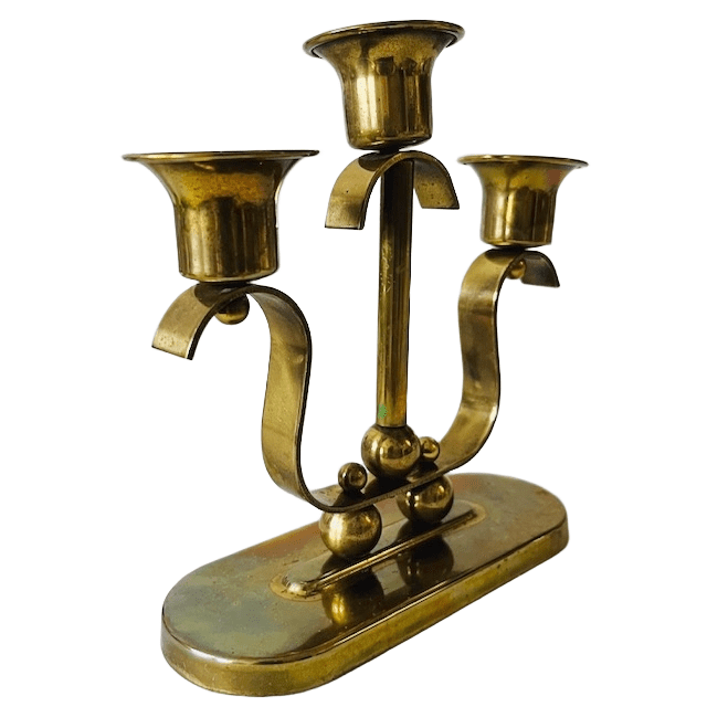 Massief messing antieke artdeco 3-punts kandelaar uit de jaren 20 met 3 kaarsenhouders uit de jaren 20.