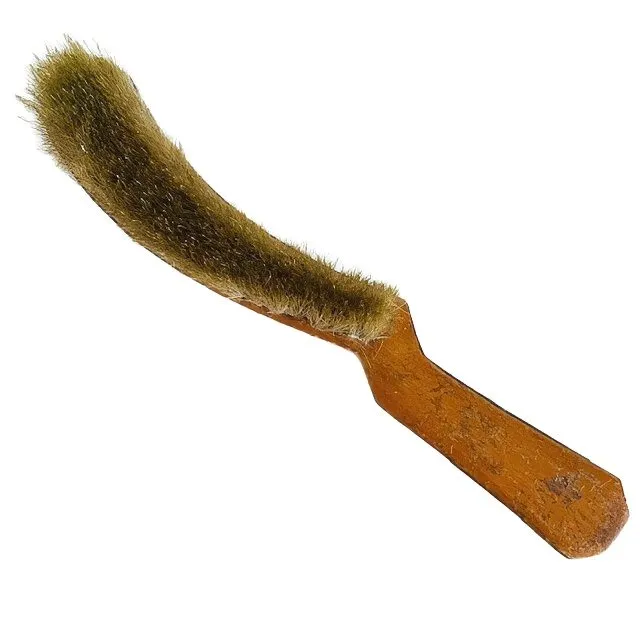 Elegante antieke Art deco stoffer en blik gemaakt van messing uit de jaren 20. De veger en blik hebben beiden een prachtig art deco patroon dat erin is gegraveerd. Deze set werd gebruikt om de tafel vrij te houden van broodkruimels en dergelijke. Uitstekend om op een elegante manier schoon te maken. Het blik en de gebogen borstel zijn beide gemaakt van messing. Alles in goede staat, geschikt om aan de muur te hangen.