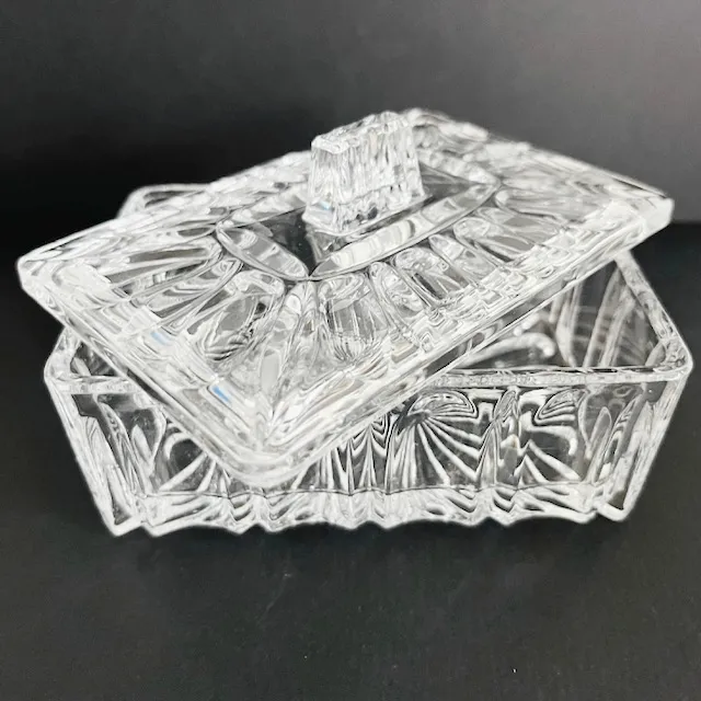 Deze sieradendoos is in de stijl van Baccarat-kristal. Het sieradendoosje is vakkundig gegraveerd met diverse patronen die zorgen voor een mooie schittering.