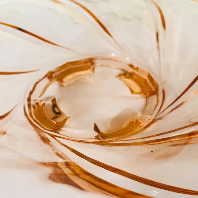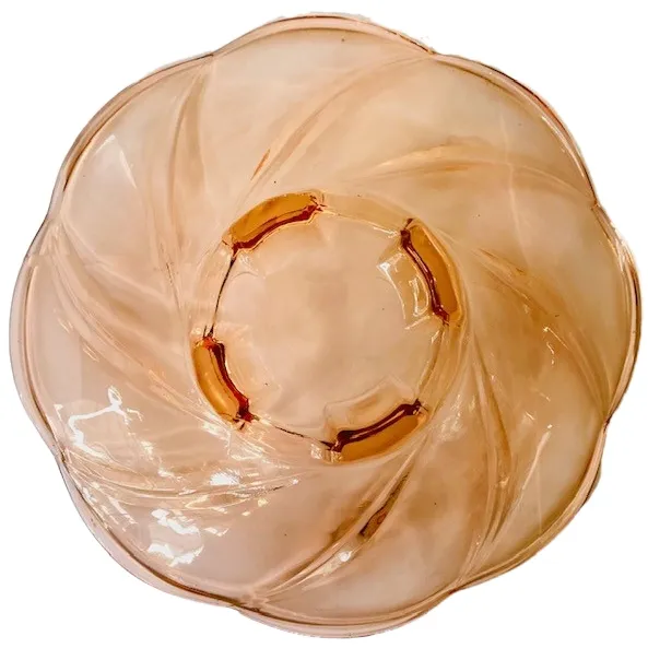 Primus Art deco schaal in roze glas met een golvend patroon uit de jaren 30. Deze artdeco fruitschaal is in de jaren 30 gemaakt door het Duitse Walter & Söhne.