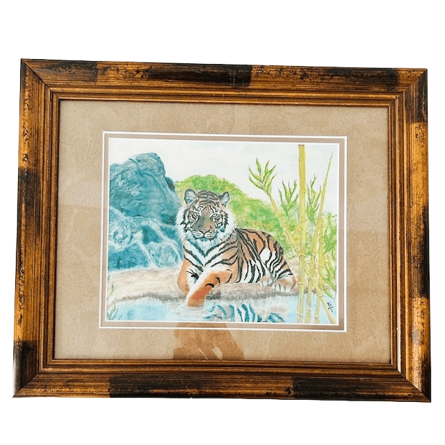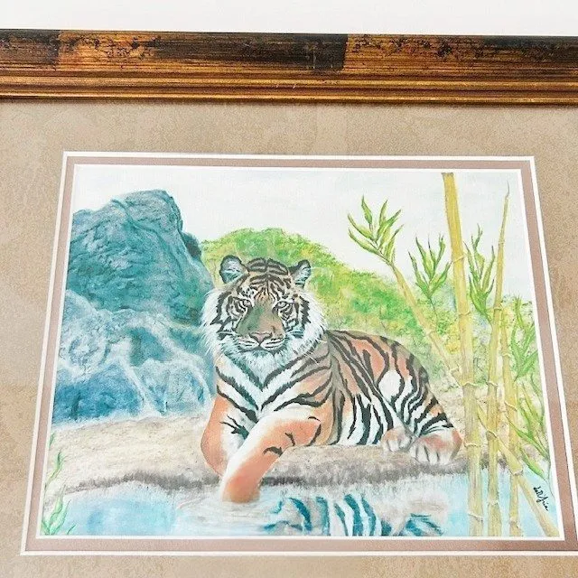 Corinne dell Aria schilderij ingelijst pastel schilderij van een prachtige tijger uit circa 2000.