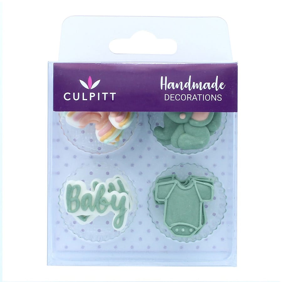 Wie zegt dat het vieren van de geboorte van een klein baby’tje in roze of blauw moet? Deze mooie groene kleur die je kunt gebruiken bij een babyshower of een geboortjefeestje is helemaal hip! De Culpitt Suikerdecoratie Baby Groen heeft 12 figuurtjes gemaakt van suiker die de traktaties voor een baby-feestje helemaal af maken!