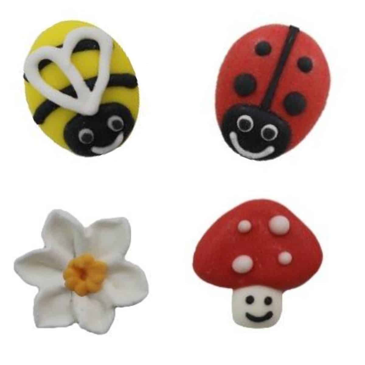 Met deze leuke handgemaakte suikerdecoraties van Culpitt maak jij geweldige traktaties. De set bestaat uit lieveheersbeestjes, bijtjes, bloemetjes en paddestoeltjes. Super schattig en geweldig voor cupcakes, koekjes en taartjes.