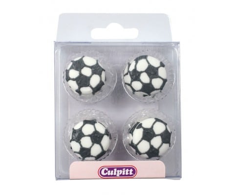 Met deze leuke suikerdecoratie in voetbalthema decoreer jij eenvoudig de leukste traktaties. De verpakking bevat 12 voetbalvormpjes van ca. 25mm doorsnede. Perfect voor op een cupcake of andere traktatie. Ook leuk aan de zijkant van een taart!