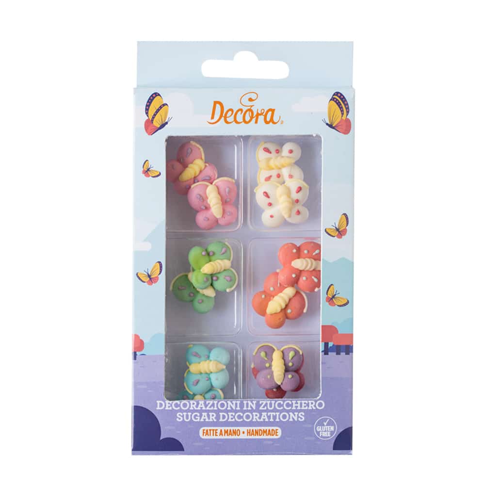 Met deze vlindertjes van suiker maak jij de mooiste traktaties. De vlinders zijn handgemaakt en er zijn natuurlijke kleurstoffen gebruikt. Plaats ze op een cupcake, een koekje of op een taart, eventueel in combinatie met bloemetjes en je hebt een geweldige traktatie!
