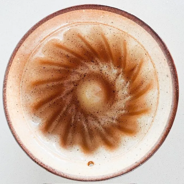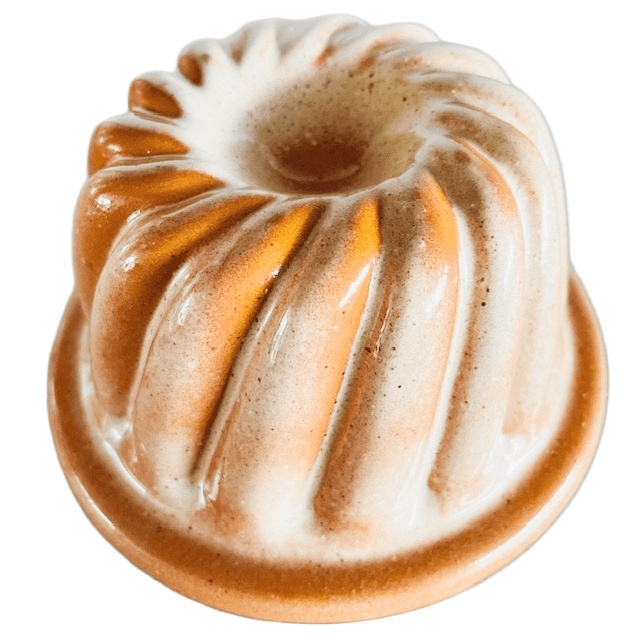 Franse antieke keramische geglazuurde bakvorm van keramiek voor een tulband uit de jaren 20. Deze tulband vorm heeft een gaatje zodat je ‘m eventueel ook kunt ophangen als keukendecoratie.