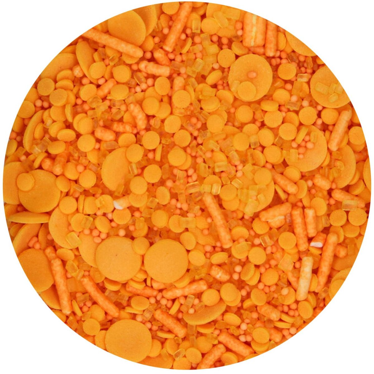 Deze oranje spinkle medley van FunCakes is perfect voor het decoreren van cupcakes, taarten, cakepops en nog veel meer! De oranje kleur van de medley is perfect voor bijvoorbeeld een kampioenschap, Koningsdag of Halloween! Je kunt de medley natuurlijk ook heel goed combineren met andere kleuren! Je kunt het zo gek niet bedenken of de sprinkle medley past er prima bij!