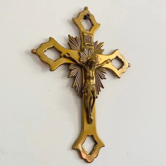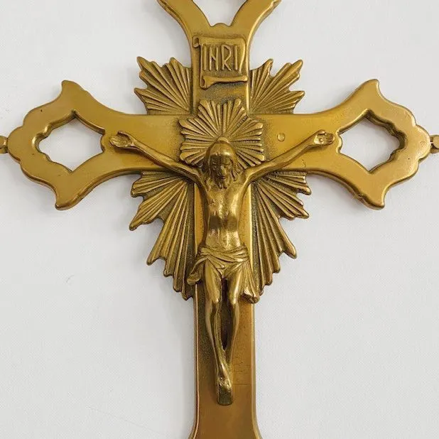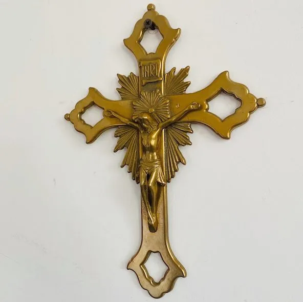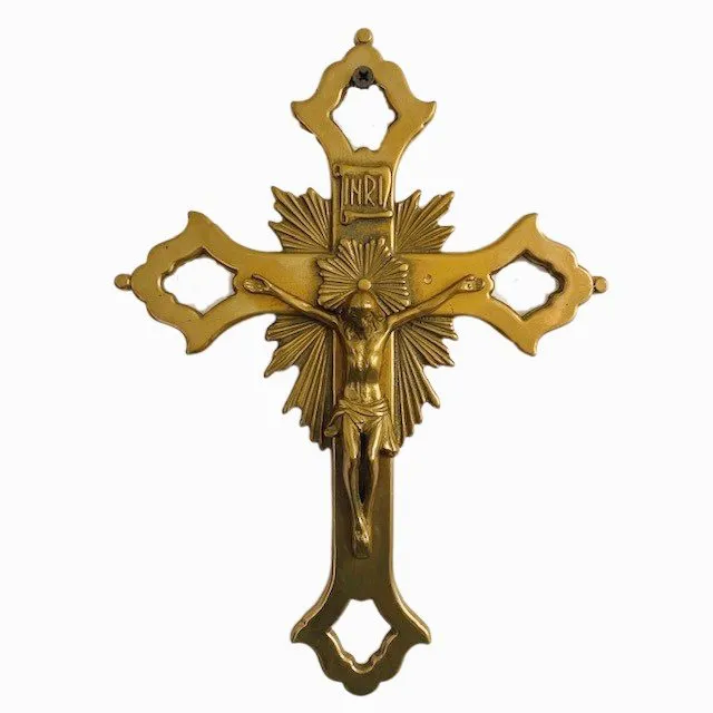 Prachtig Byzantijns kruis van massief messing met mooi starburst detail. Het kruis dateert uit de jaren 30 en is Frans.