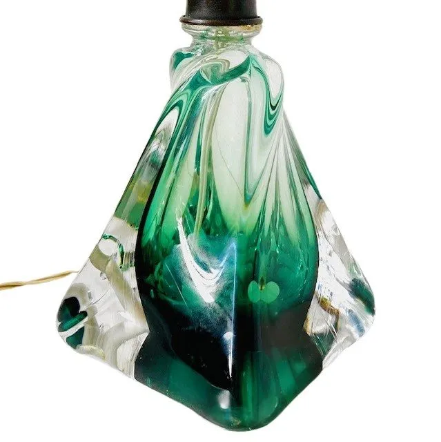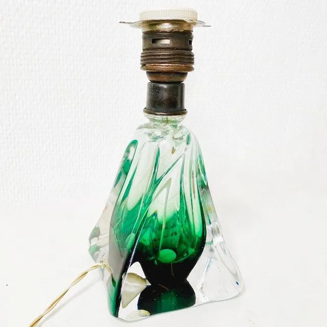 Prachtige vintage mid-century lampenvoet voet van Val Saint Lambert in groen glas uit de jaren 50.