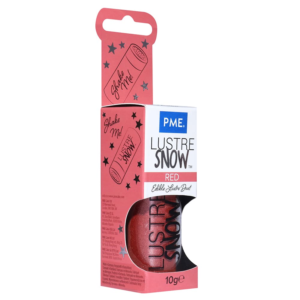 Decoreer jouw traktaties met deze mooie glitterpoeder van PME! De rode lustre snow zit in een handig busje met mini zeefje, zodat je eenvoudig de glittering over je traktaties kunt strooien.