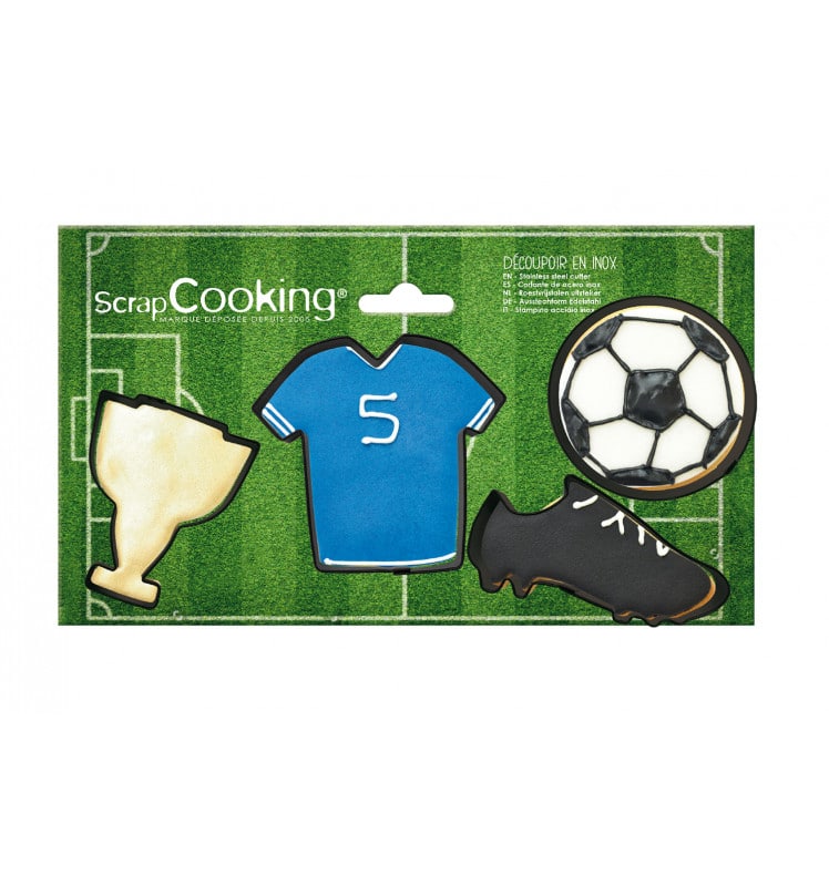 Set van 4 roestvrijstalen uitstekers in het thema voetbal. Met deze cookie cutters van ScrapCooking maak je elke voetbalfan blij. Decoreer in de kleuren van de favoriete voetbalclub en het feest is helemaal compleet!
