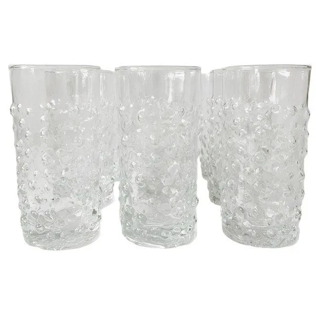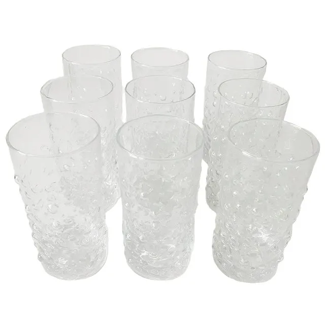 Toffe set van 9 vintage vintage hobnail glazen gemerkt aan de onderzijde met “Texaco” uit de jaren 60/70. Deze glazen werden vermoedelijk als spaarcadeau weggegeven.