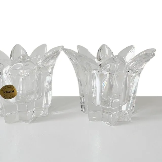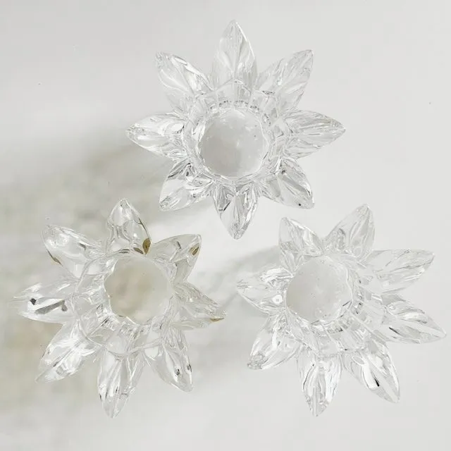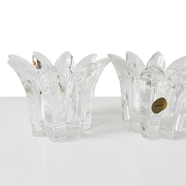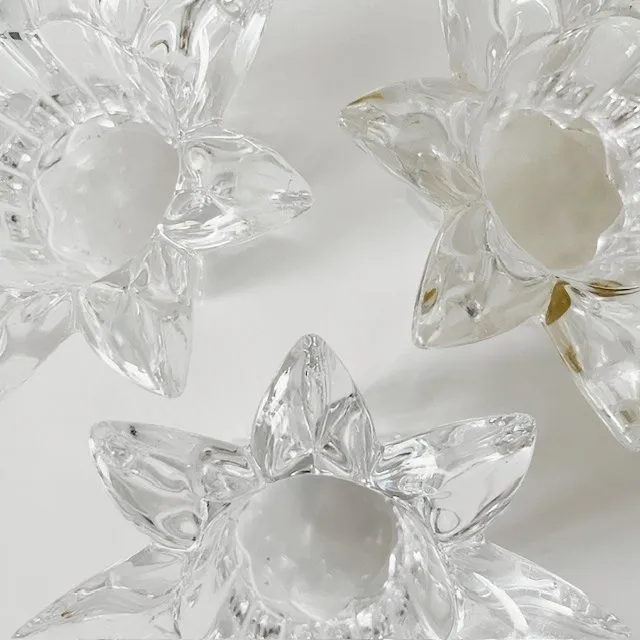 Set van drie vintage Italiaanse Royal Crystal Rock Laurus Star loodkristal waxinelichthouders uit de jaren 80.