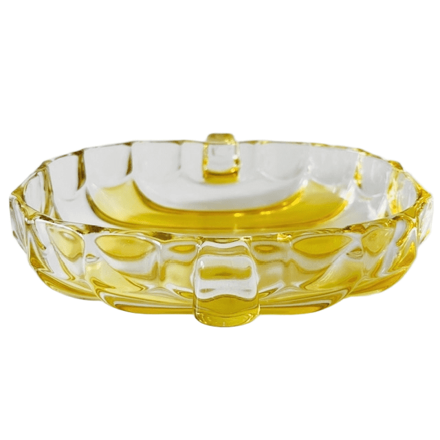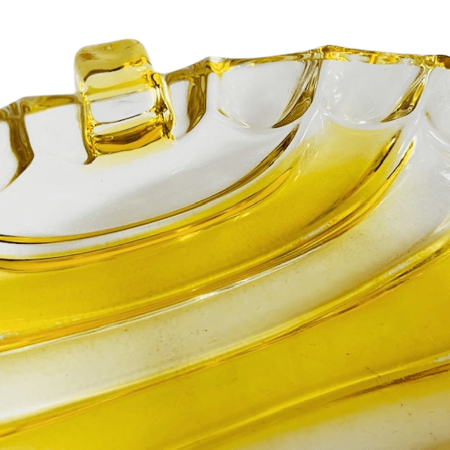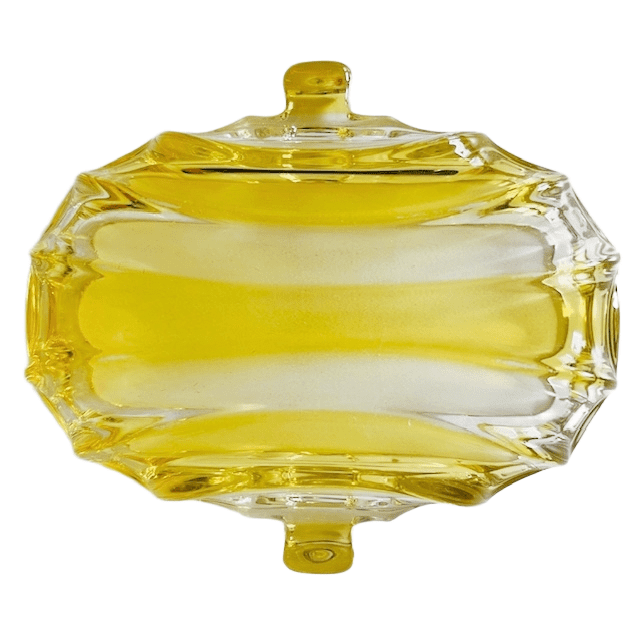 Prachtig vintage August Walther & Sohne glazen schaaltje in geel en transparant glas uit de jaren 70.