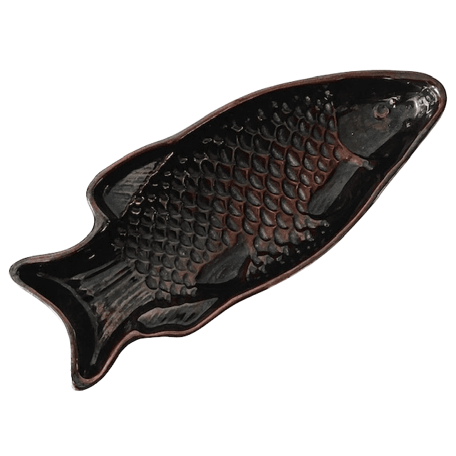 Leuke vintage bakvorm in de vorm van een Vis, gemaakt van bruin keramiek uit de jaren 70. Hij kan ook gebruikt worden als puddingvorm.
