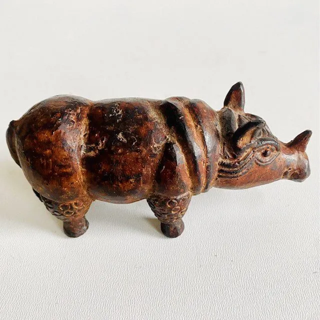 Mooi vintage bronzen koud geschilderd en met olie gewreven neushoorn beeldje in brons. Leuk als decoratie of als presse-papier.