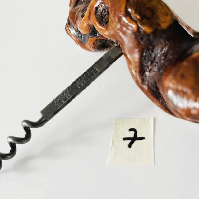 Vintage Franse Bernard Siret kurkentrekker 7 met een handvat van wortelhout van een wijnrank uit de jaren 20-30. Dit object is uitgerust met een koperen plaquette met de tekst “A&R Barrière Frères Bordeaux” eert de rijke geschiedenis van de Bourgogne.