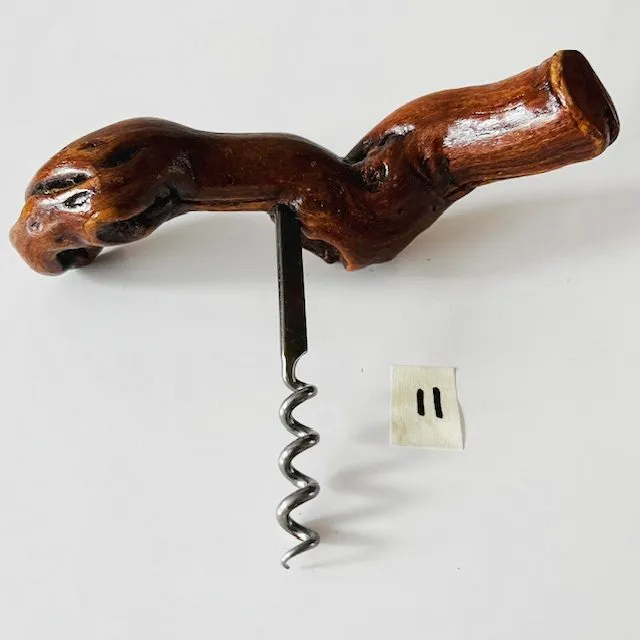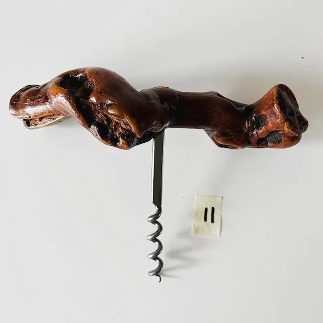 Het tactiele knoestige houten handvat van de kurkentrekker zorgt voor een rustiek en organisch gevoel, waardoor het een praktisch onderdeel van de wijngeschiedenis is en een geweldige toevoeging aan de collectie van elke wijnliefhebber.