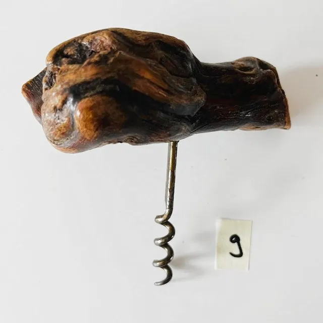 Vintage Franse kurkentrekker 9 met een handvat van wortelhout van een wijnrank uit de jaren 50.