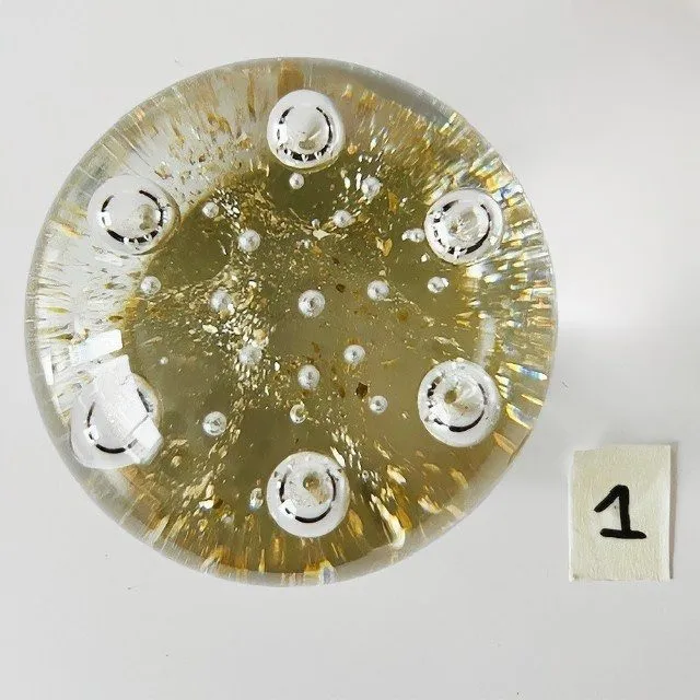 Deze glazen presse-papier is in zeer goede staat en heeft een doorsnede van 6,5 cm.