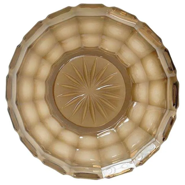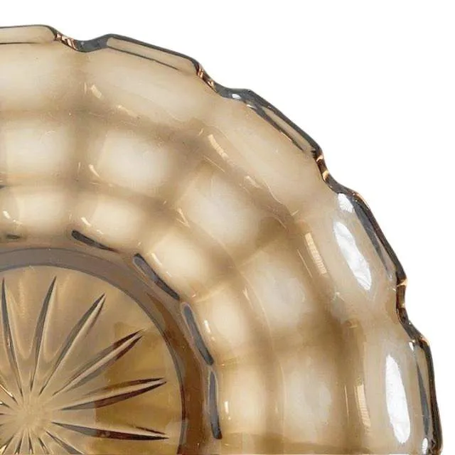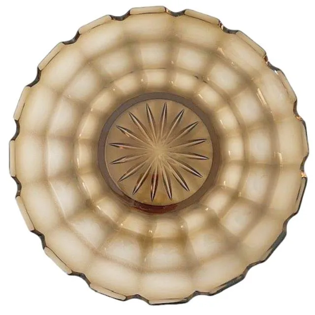 Vintage glazen presenteerschaal “Lord”, ontworpen door Rudolf Schrötter voor Rudolfova Hut in 1921. Deze prachtige robuuste ronde glazen presenteerschaal of onderschotel is gedecoreerd met vierkante vlakken.