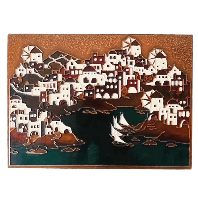 Vintage Grieks mid-century wandplaquette koper emaille AETHRA schilderij 1970’s