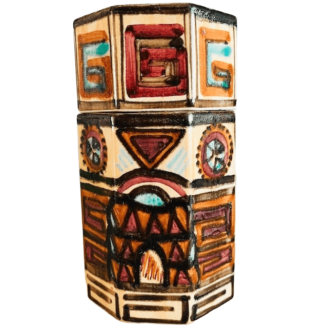 Vintage keramische pot met handgeschilderde geometrische patronen uit de jaren 60.