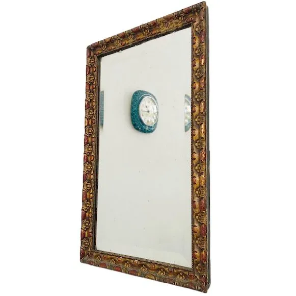 De jaren 30 spiegel is in goede vintage conditie, op een klein chipjes in het spiegelglas aan de zijkant na. Dit valt in het geheel niet op.