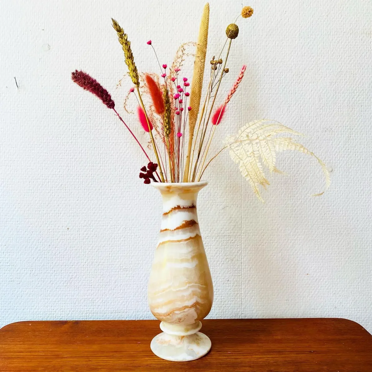 Wat een toffe vintage marmeren vaas is dit. En deze matcht prachtig bij de droogbloemen die ik nog had liggen.