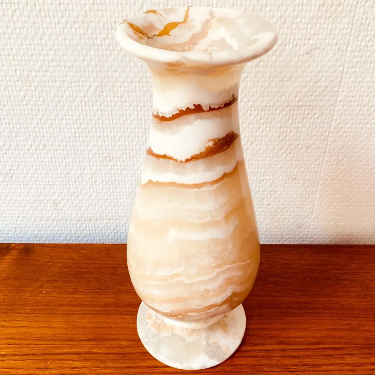 De vaas van marmer is 25 cm hoog en heeft een doorsnede van 9 cm.
