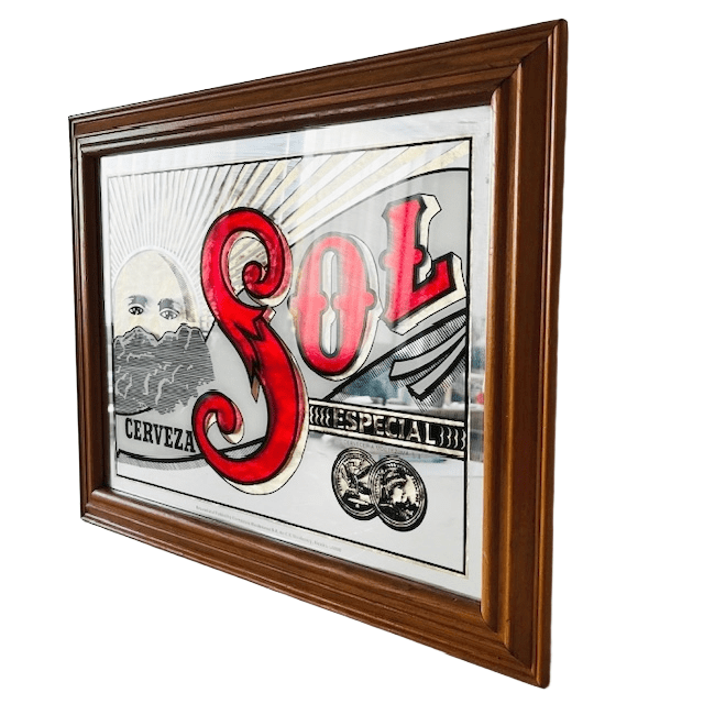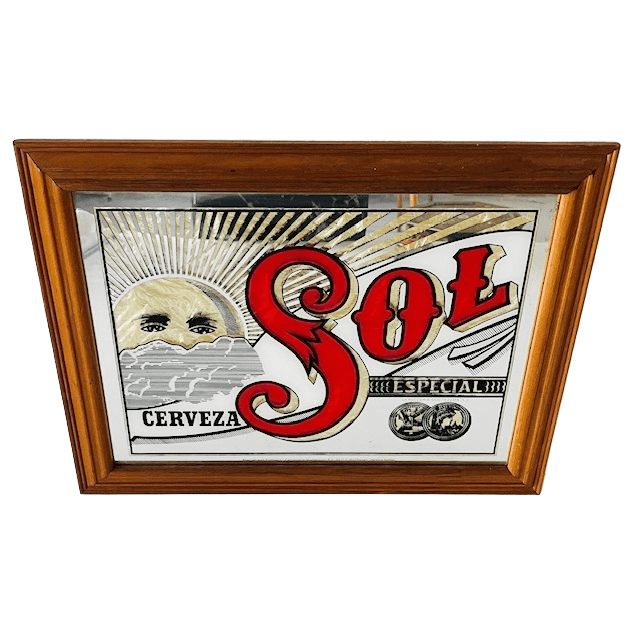 Deze zeldzame vintage Mexicaanse Cerveza Sol bierspiegel is in de jaren 60 in Mexico geproduceerd.