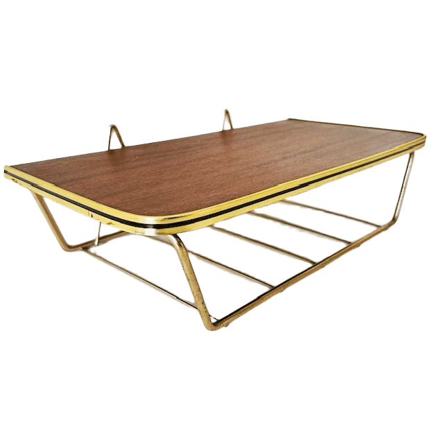 Vintage mid-century Deens Design wandrek met teak plankje en messing frame uit de jaren 60.