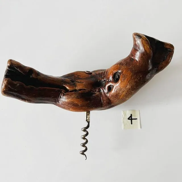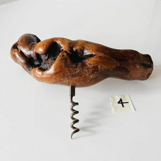 Vintage mid-century Franse kurkentrekker 4 met een handvat van wortelhout van een wijnrank uit de jaren 50.