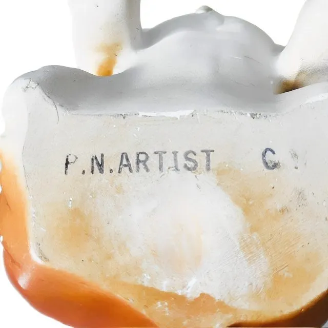 Leuke gemerkt vintage mid-century hond beeldje Engelse Bulldog hondenbeeld gemaakt van keramiek uit de jaren 60. Het honden beeldje is in goede staat en 14 cm hoog, 20 cm lang en 14 cm diep. Het Bulldog beeldje is aan de onderzijde gemerkt met de tekst: P.N. Artist C.