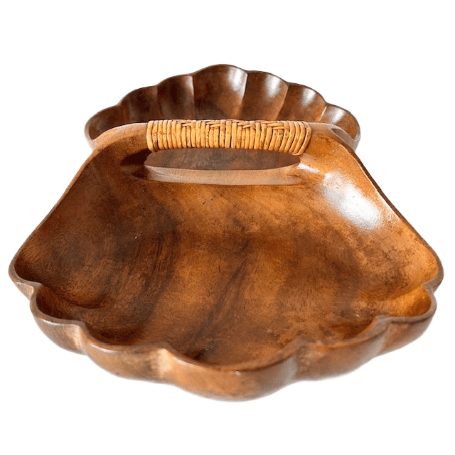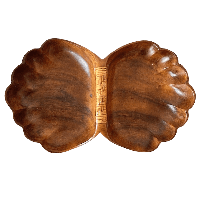 Deze prachtige vintage Fillipijnse apenboomhouten dubbele schelpschotel is in goede vintage staat.