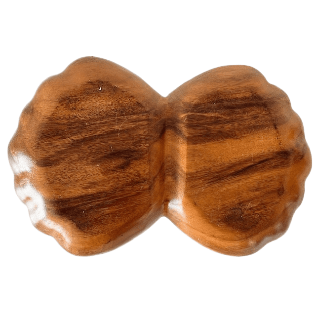 Mooie mid-century dubbele houten schelp schaal gemaakt van monkey wood in de Filipijnen in de jaren 70.