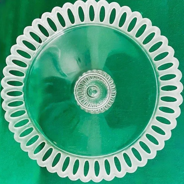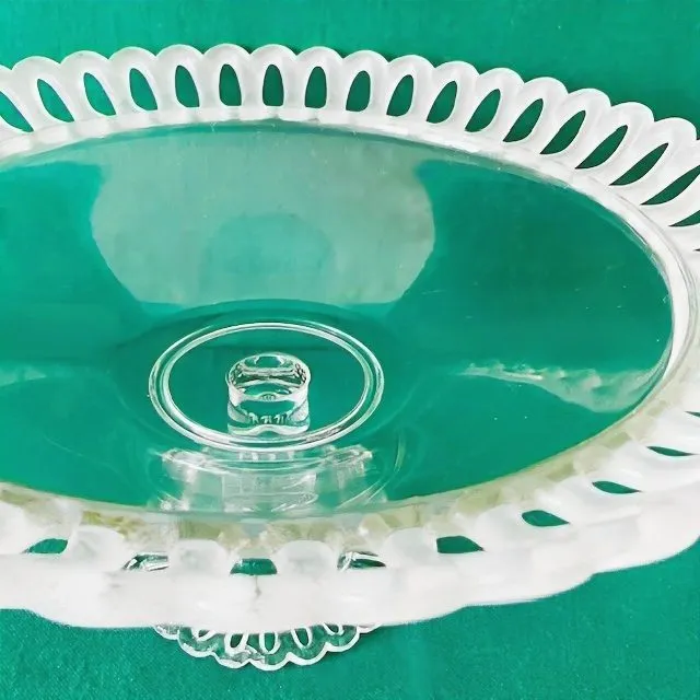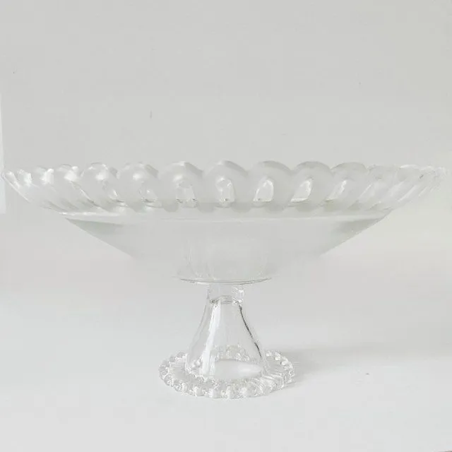 Prachtige Vintage kristallen fruitschaal slash dessertschaal op voet gemaakt van kristal uit de jaren 60. De schaal laat een mooie combinatie van mat en glanzend kristal zien.
