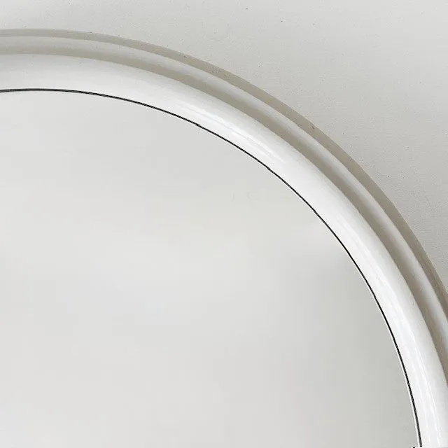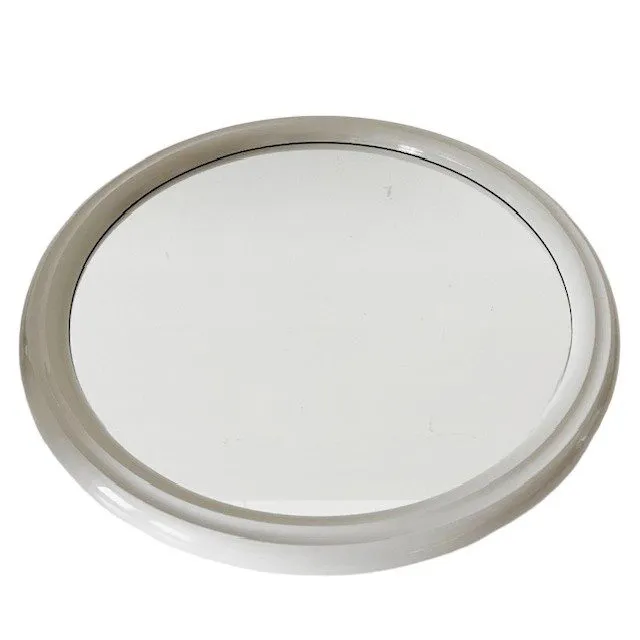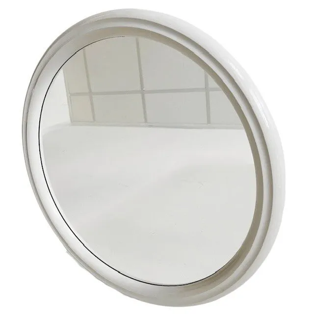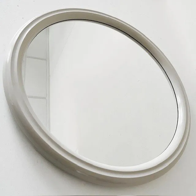 Vintage mid-century retro ronde Space Age wandspiegel in grijs kunststof uit de jaren 70.