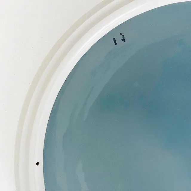 Deze retro spiegel is in goede vintage staat. De ronde spiegel heeft een doorsnede van 50 cm en is 3,5 cm diep.