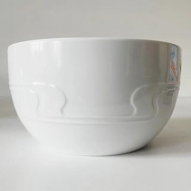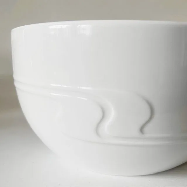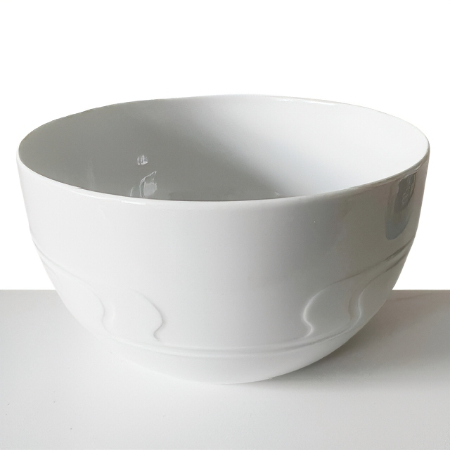 Deze witte porseleinen schaal is ontworpen door Tapio Wirkkala in 1961.