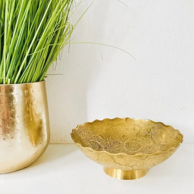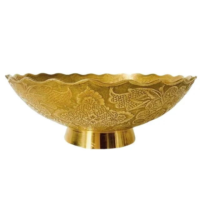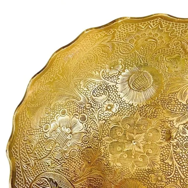 Prachtige Vintage Oosterse gegraveerde Peacock messing schaal met rijkelijke gravering van sierlijke patronen en bloemen uit de jaren 30.