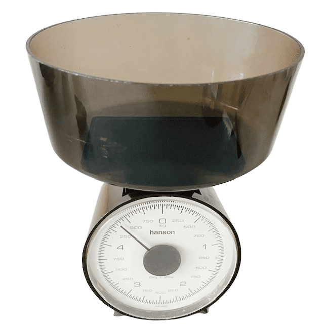 De retro keukenweegschaal is in redelijke vintage staat en is 24,2 cm hoog, 18 cm breed en 10,5 cm diep.