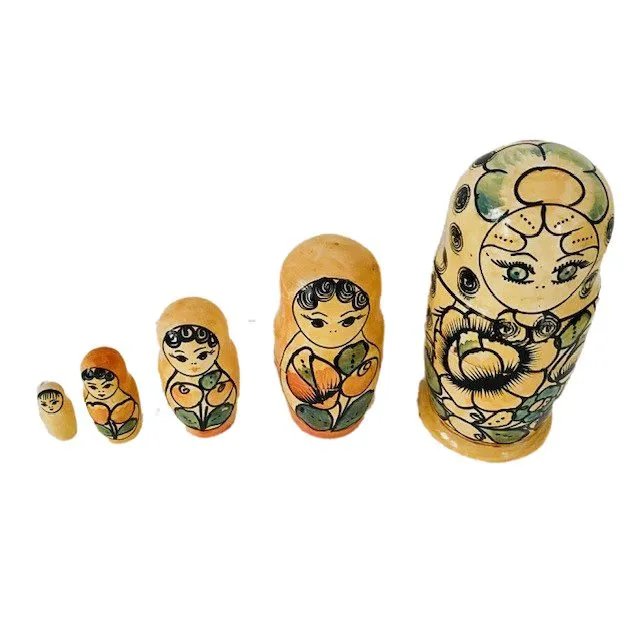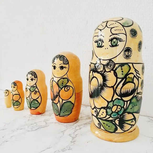 Set vintage Russische nestpoppen matroesjka set russian doll handbeschilderd uit de jaren 60.