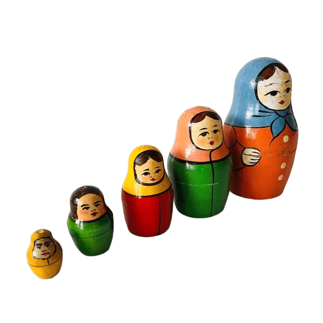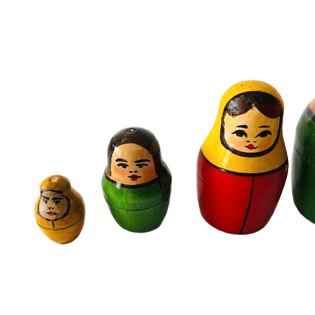 Set vintage Russische nestpoppen matroesjka set russian doll handbeschilderd uit de jaren 60.