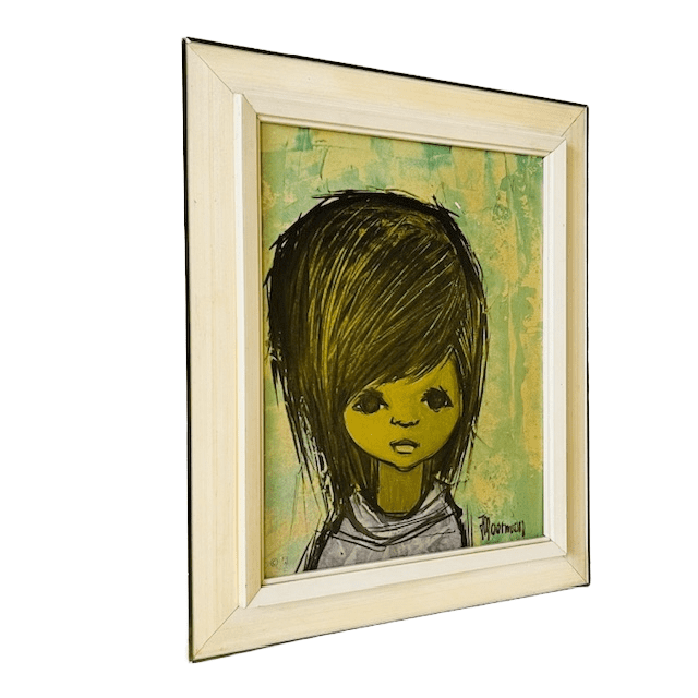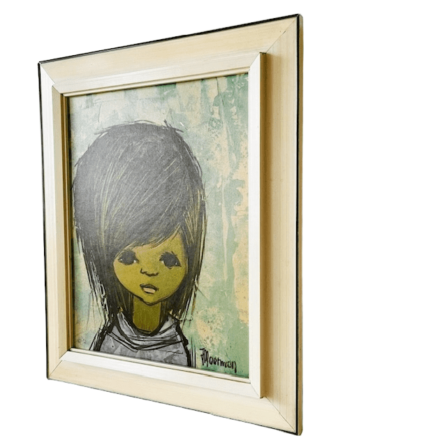 Het schilderij met Moerman prent is 32,2 cm hoog, 27 cm breed en 3 cm diep.