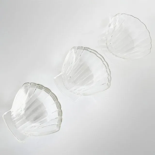 Vintage set amuse schelpvormige glazen schaaltjes schelp Pyrex uit de jaren 60.
