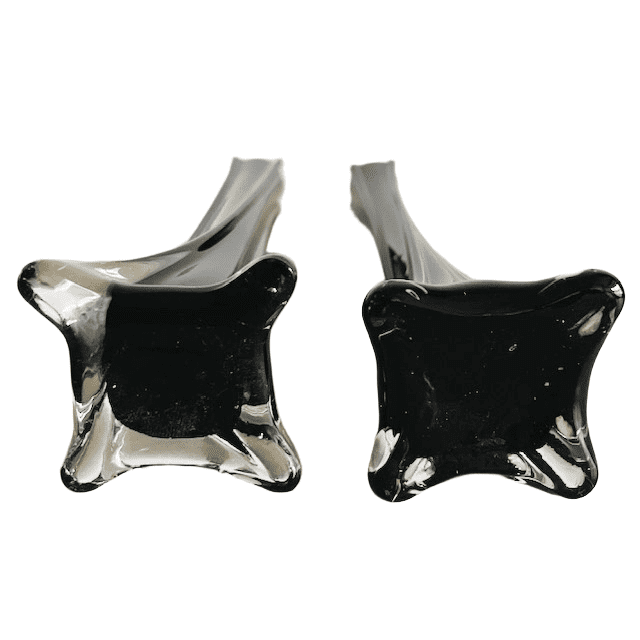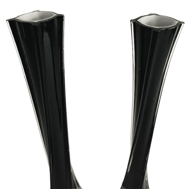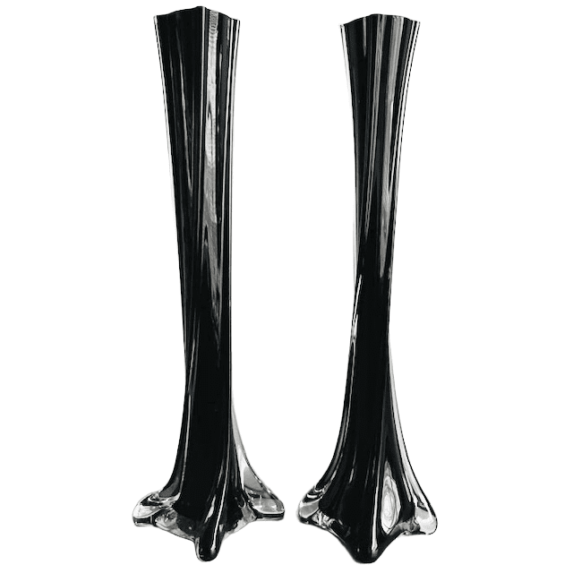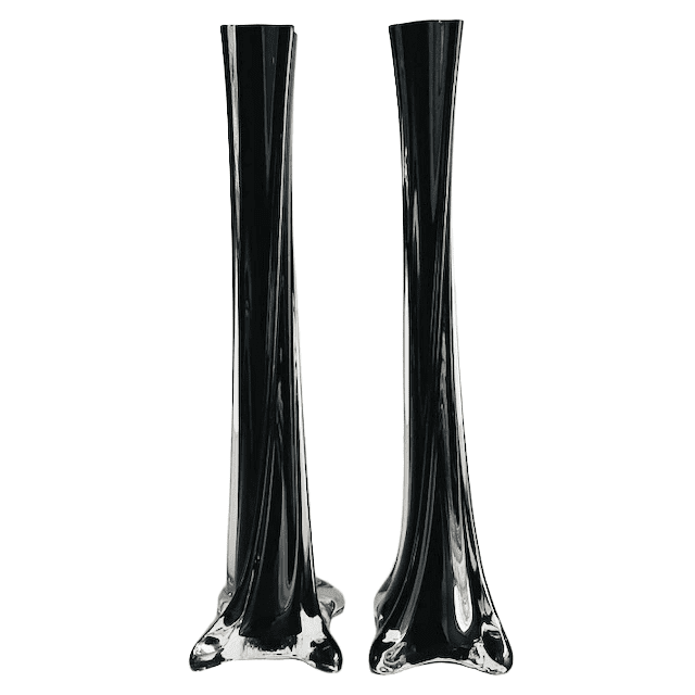 Vintage set van twee slimline vazen in zwart, wit en helder glas uit de jaren 70.